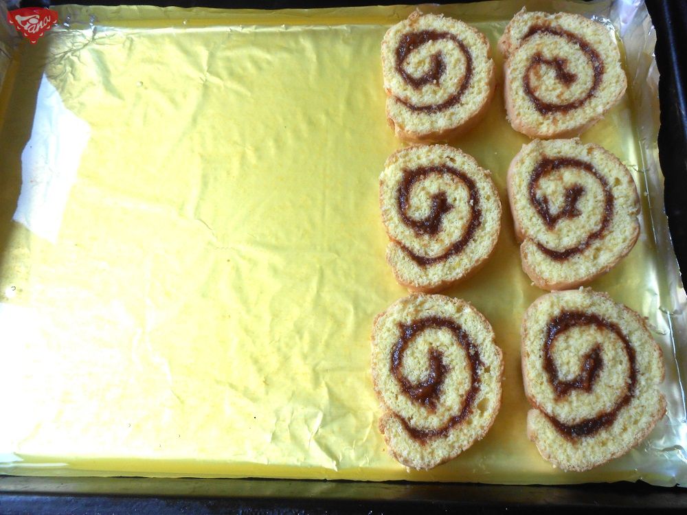 4. Roládu pokrájíme na kolečka a ukládáme na ztuhlou želatinu.
