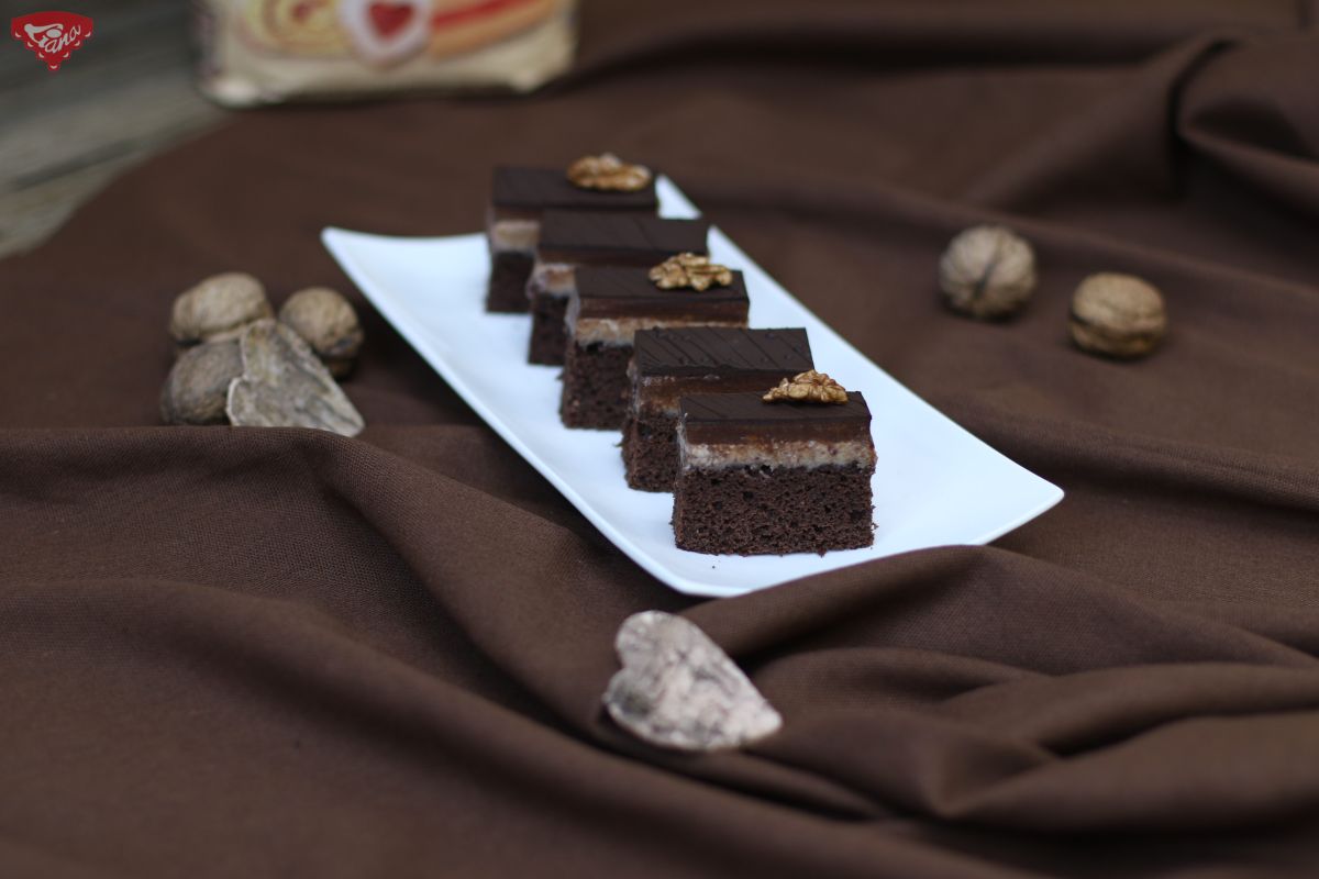 - Změklé máslo vyšleháme s moučkovým cukrem a vychladlým prošlehaným pudinkem. Rovnoměrně rozetřeme na ořechový krém a necháme opět ztuhnout v chladničce.