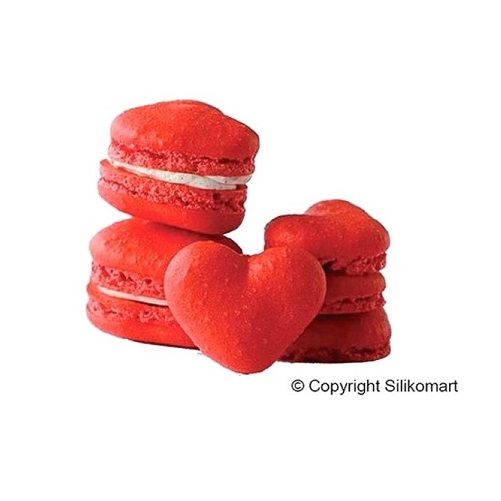 Silikonová forma pro přípravu makronek ve tvaru srdíčka.