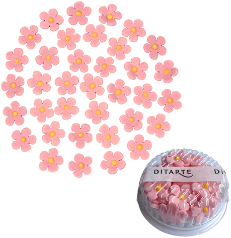 Mini cukrové květiny v jemné růžové barvě na ozdobení dortu nebo zákusků. Květy jsou ručně vyráběny, mohou se mírně lišit velikostí a vzhledem.
