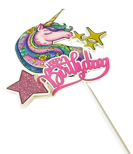 Zápich s motivem jednorožce a nápisem Happy Birthday jistě potěší na dortu každého malého oslavence.