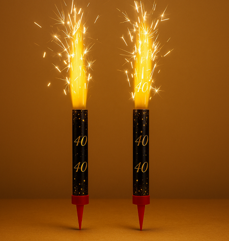 Elegantní fontány na dort (12 cm, 2 ks) jsou ideální dekorací pro 40. narozeniny, oslavy nebo výjimečné příležitosti. Po jejich zapálení vytvářejí efektní svítící jiskry , které vašim dezertům dodají nezapomenutelný vizuální efekt a oslňující moment při podávání dortu. Stačí je zapíchnout do dortu a vytvoříte atraktivní dekoraci, která zaujme všechny hosty az každé oslavy učiní ještě výjimečnější zážitek.