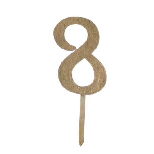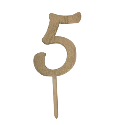 Elegantní dřevěný zápich na dort s číslem ve zlaté barvě je krásnou dekorací na narozeninové dorty pro děti i dospělé.