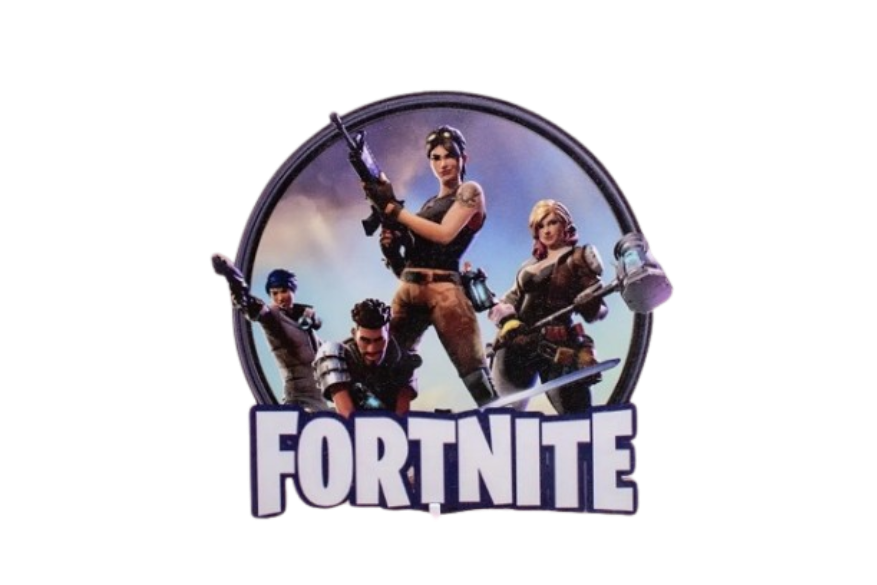 Dřevěný výřez loga ze hry Fortnite je stylová dekorace, která dodá dortu originální herní vzhled. Vyrobený z překližky s kvalitním potiskem, vhodný jako zápich i pro nalepení na čelo dortu. Součástí balení je hůlka i samolepící magnet.