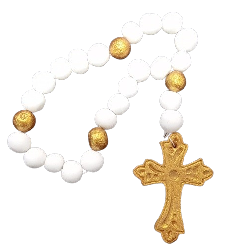 Dekorativer Rosenkranz, weiß-golden, 17 cm