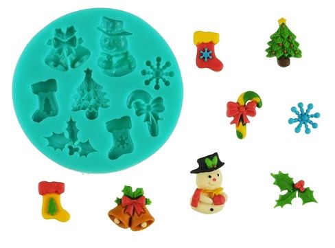 Silikonform Mini-Glöckchen, Weihnachtsmann, Baum, Stiefel