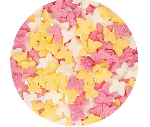 Verzieren Sie Ihre Kuchen, Cupcakes, Cake Pops, Kekse oder andere Desserts mit farbenfrohen Zucker-Schmetterlingen , die für einen originellen und farbenfrohen Effekt sorgen. Die Schmetterlinge sind in einem praktischen Spender verpackt und lassen sich daher einfach und schnell verwenden.