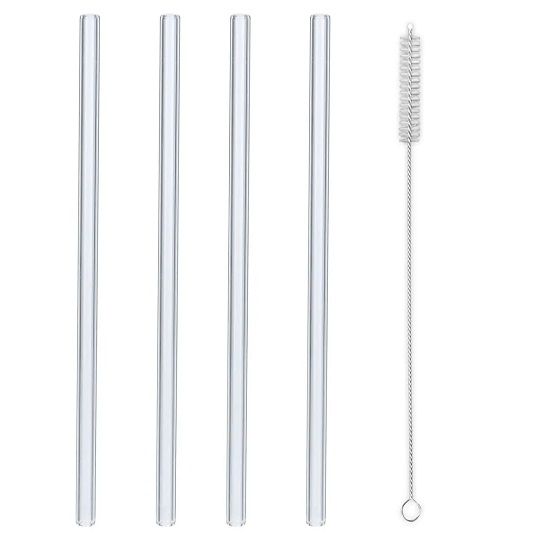 Dieses 4er-Set Glasstrohhalme ist eine umweltfreundliche Alternative zu Plastikstrohhalmen. Hergestellt aus robustem Borosilikatglas, geben sie keine Schadstoffe wie BPA oder Phthalate ab und sind für den wiederholten Gebrauch geeignet.