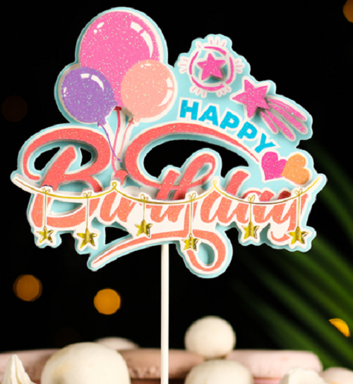 The Happy Birthday inscription is complemented by colorful balloons that create a cheerful and playful effect.