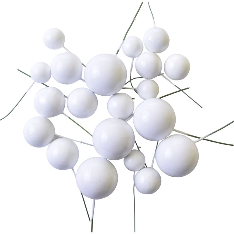 Twenty balls of different sizes, which you can use to decorate cakes, pastries, muffins and other desserts. They are suitable for various occasions. The decoration is not intended for direct contact with food (before use, you must protect the wires with e.g. foil, food wax, chocolate, florist's tape).