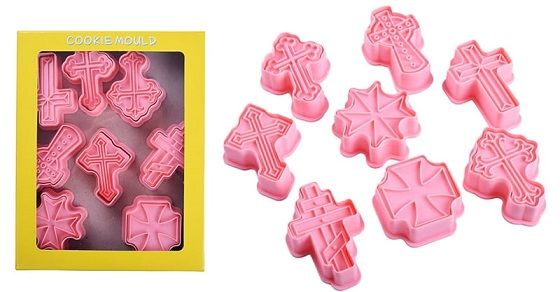 The set includes cookie cutters in various cross shapes, ideal for first communion, with which you can quickly and easily prepare cookies or cut out marzipan decorations.
