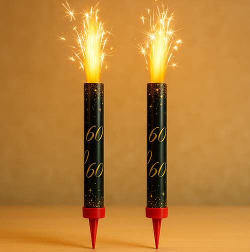 Elegant cake fountains (12 cm, 2 pcs) are the ideal decoration for a 60th birthday, celebration or special occasion. When lit, they create spectacular glowing sparks that will give your desserts an unforgettable visual effect and a dazzling moment when serving the cake. Simply stick the fountains into the cake and you will create an attractive decoration that will impress all guests and make every celebration an even more special experience.