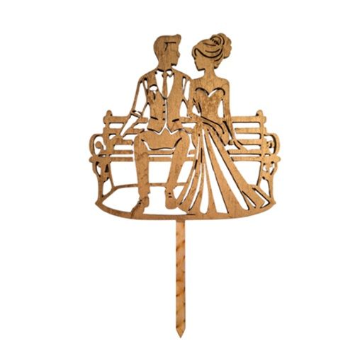 Wedding couple on a bench, wood, gold color