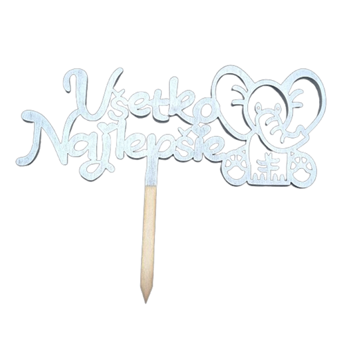 A silver-colored wooden topper with the inscription "Happy Birthday" and a cute motif will be an ideal addition to a child's birthday cake.