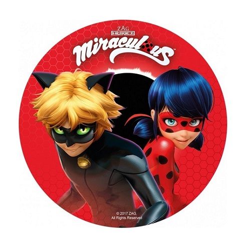 Wafer for decorating a cake with a motif from the fairy tale The Cat and the Ladybug.