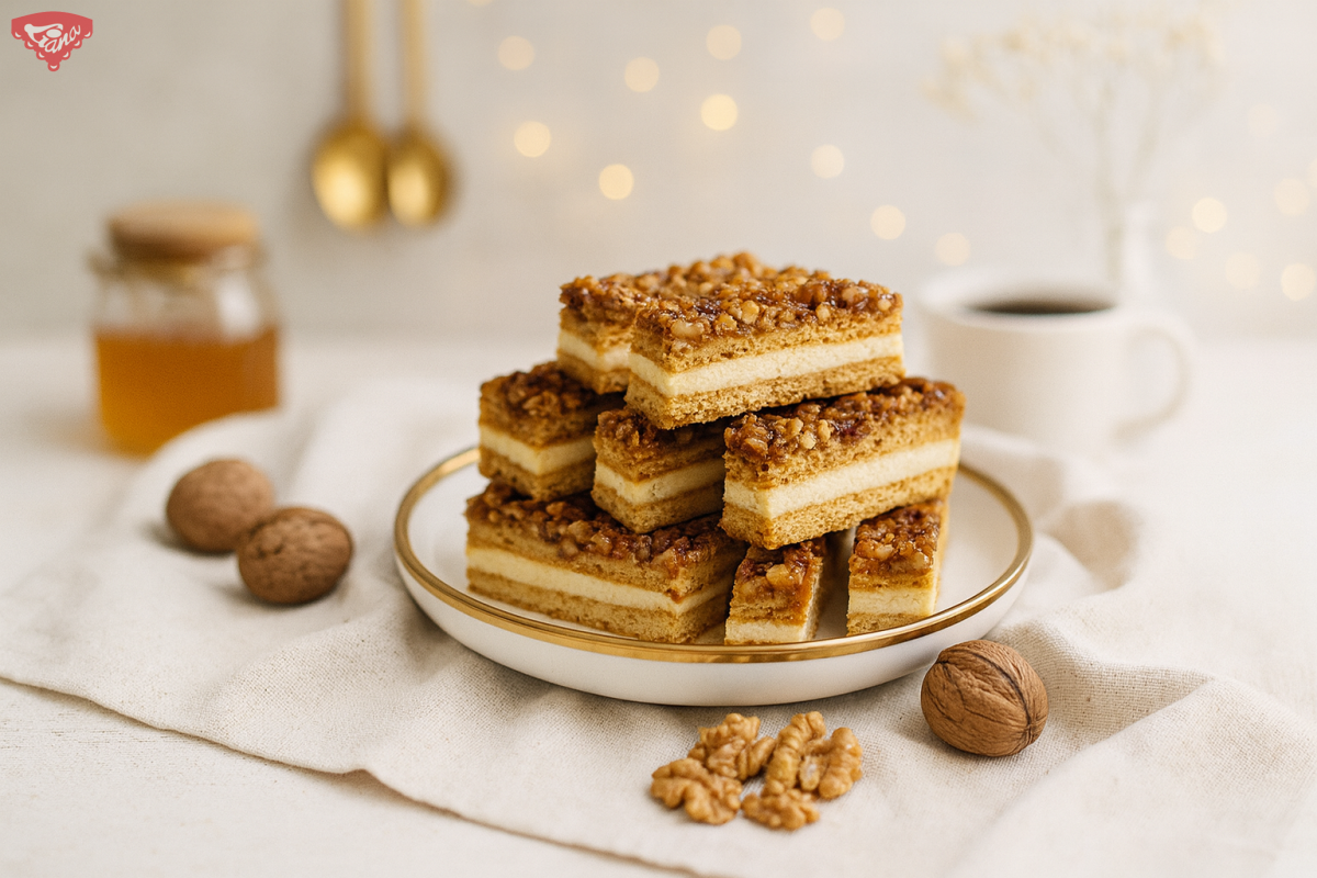 4. Prepare the nut mixture: Mix chopped nuts with butter, sugar and honey in a pan, let them melt.