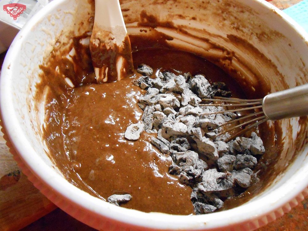 2. Beat the whole eggs with a mixer. Gradually add cane sugar and cooled coffee mixture. Mix Fine mix with salt and finally plums into the whipped mass by hand. Dust the prunes with Fine mix Liana .