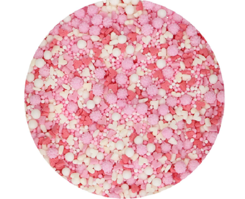 Adj egy édes, szeretetteljes csemegét desszerteidhez ehető szórócukorkák gazdag keverékével, lágy rózsaszín, piros és fehér árnyalatokban, amelyek tökéletesek különleges alkalmakra, mint például Valentin-nap, anyák napja vagy romantikus sütögetések .
