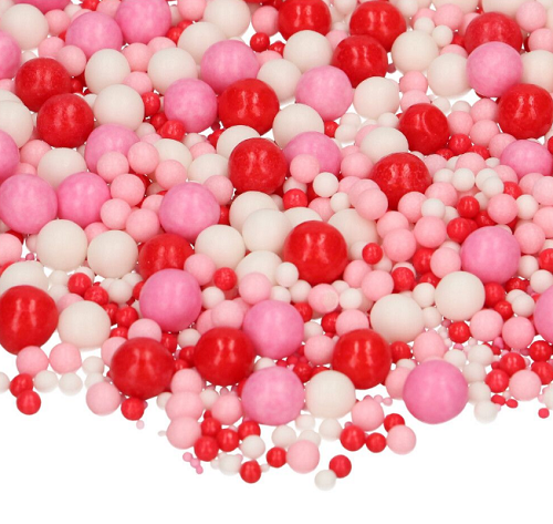 Egy gyönyörű piros cukorszóró keverék tökéletes a desszertek megjelenésének merész piros színnel való kiegészítéséhez. Cukorfigurák, apró gyöngyök, konfetti és vékony cukorspirálok keverékét tartalmazza a vonzó és vidám hatás érdekében.