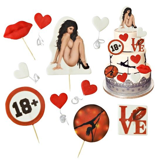 - díszítés 18+: átmérő: 6 cm / hossz fogpiszkálóval: 9 cm