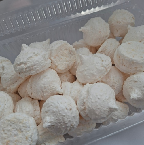 Összetevők: tojásfehérje , kókuszreszelék (27%), cukor. Száraz helyen, legfeljebb 25 °C-on tárolandó.