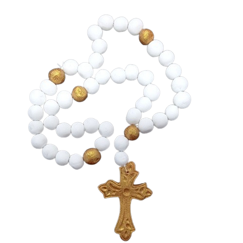 Dekoratív rózsafüzér fehér-arany 25 cm