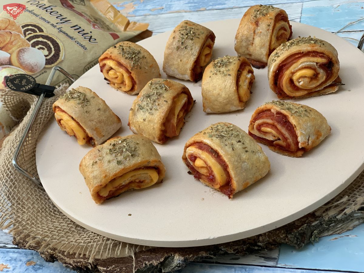 A pizza csigák kiválóak mini falatnak egy látogató számára, vagy ízletes nassolnivalónak este tévézés közben.