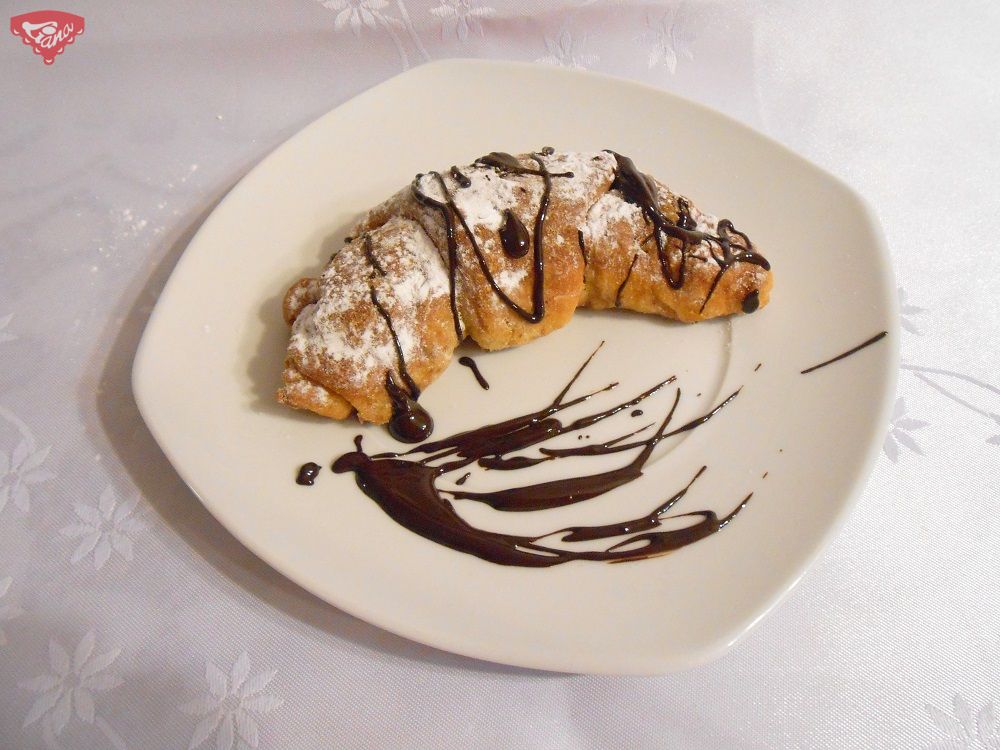 3. Po uplynutí doby si vykysnuté cesto rozdelíme na 2 časti. Každú časť vyvaľkáme na kruh a rozdelíme na 6 dielov radielkom. Na vonkajší okraj každého dielika dáme plnku a stočíme smerom dnu, aby vznikol rožtek. Preložíme na vymastený plech a necháme podkysnúť 20 minút.