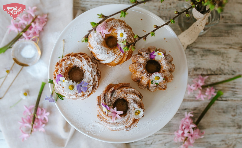 Pieczenie: Rozgrzej piekarnik do temperatury 150–160 °C i piecz ciasta przez około 30 minut. Jeśli przygotowujemy duże ciasto, pieczemy je około 15-20 minut dłużej niż małe ciasta.