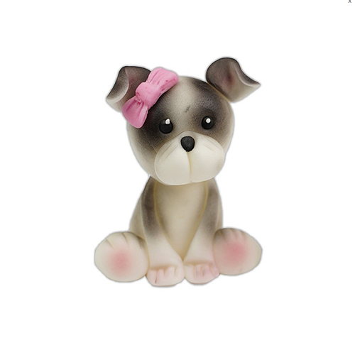 Urocza, jadalna figurka w kształcie pieska z różową kokardką idealnie sprawdzi się jako dekoracja tortu, babeczki lub innego słodkiego deseru. Świetny wybór na przyjęcie dla dzieci lub urodziny małej dziewczynki.