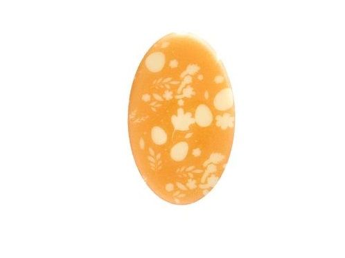 Zestaw wielkanocnych ozdób w kształcie jajek czekoladowych, wykonanych z wysokiej jakości białej czekolady w delikatnym, pomarańczowym odcieniu. Dzięki świeżym kolorom i tradycyjnemu wzornictwu nadadzą Twoim wiosennym deserom radosny i energetyczny wygląd.