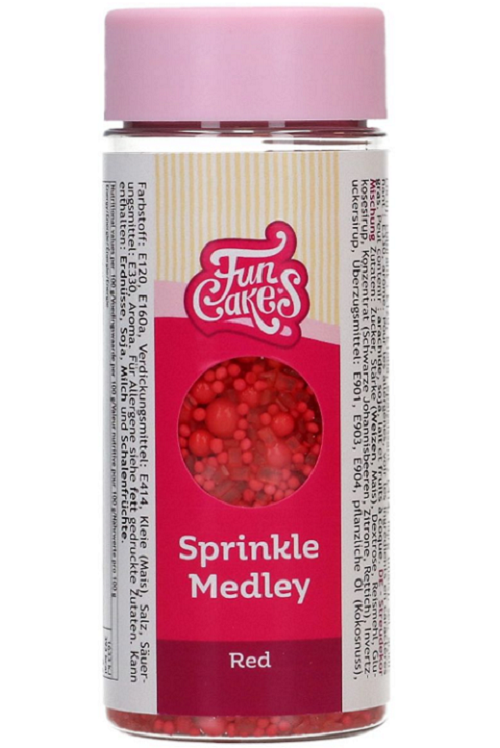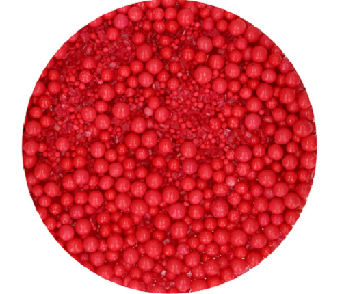 Krásna zmes červeného cukrového posypu je ideálna na doladenie vzhľadu vašich dezertov s výraznou červenou farbou. Obsahuje mix cukrových figúrok, malých perličiek, konfiet a tenkých cukrových špirálok pre atraktívny a veselý efekt.