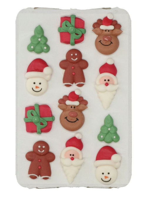 Sada vianočné cukrové dekorácie Santa, darček, sob, strom 12 ks