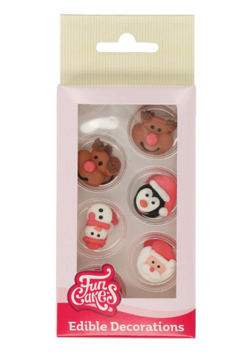 Každá dekorácia v sade zobrazuje obľúbený vianočný motív: soba, snehuliaka, tučniaka alebo Santu, čo dodá vašim tortám, cupcakes alebo sušienkam sviatočnú atmosféru.