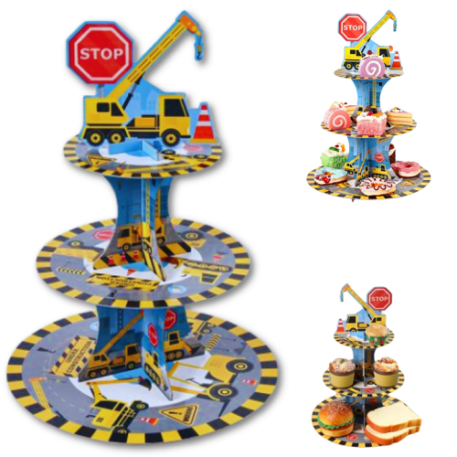 Poschodový stojan na košíčky, muffiny a jednohubky, vhodný na detskú narodeninovú oslavu alebo párty.