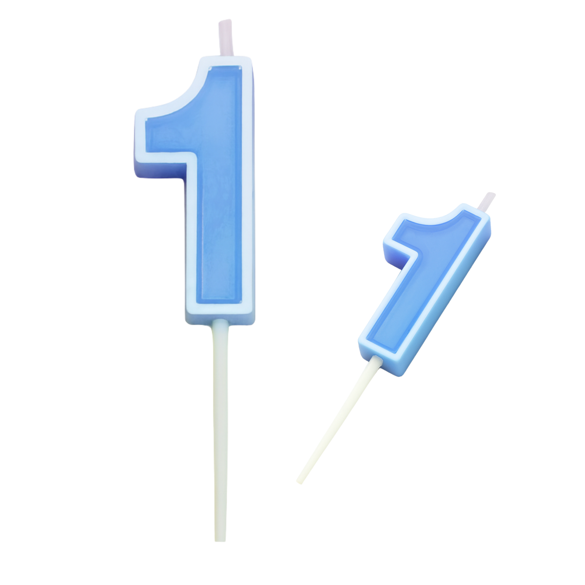 Narodeninové mini sviečky v jemnej modrej farbe so svetlomodrým okrajom, krásne vyniknú na každej torte, cupcakes či inom sladkom dezerte.