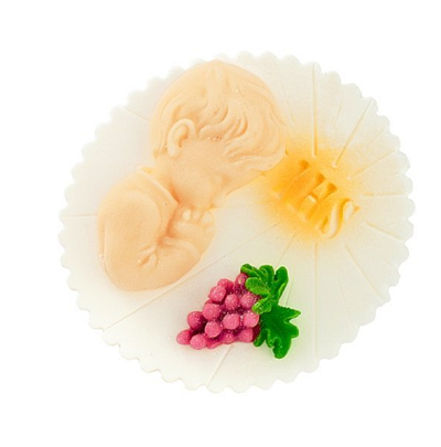 Cukrová dekorácia „hostia s chlapcom a hroznom“ je elegantný doplnok na tortu určený najmä na Prvé sväté prijímanie. Jemný motív hostie… Čítať viac…
