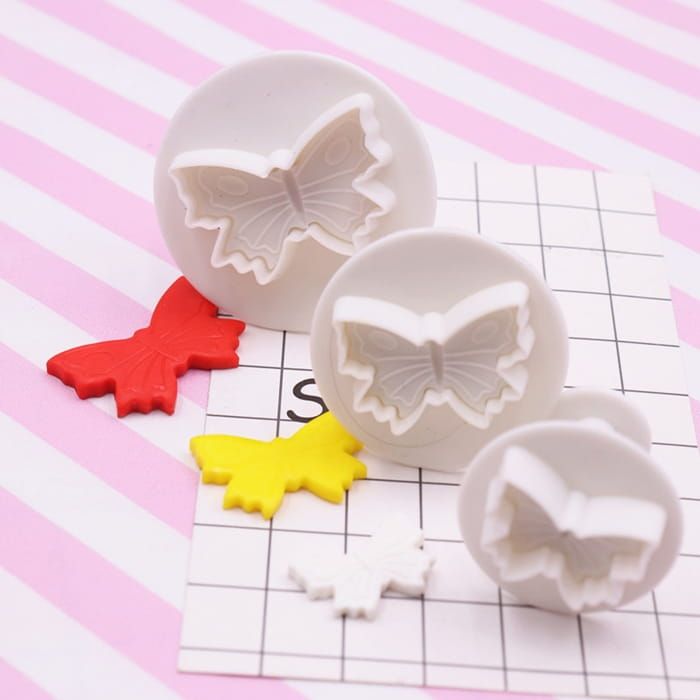 Vykrajovačka s piestom na vytvorenie krásnej ozdoby na tortu. Pomocou nej možno ľahšie vytvárať efektné vzory v tvare motýľa, na cukrových hmotách. Vzor jednoducho z hmoty vykrojíte a pomocou piestu si ho z vykrajovačky vytlačíte a ozdobíte ním tortu.