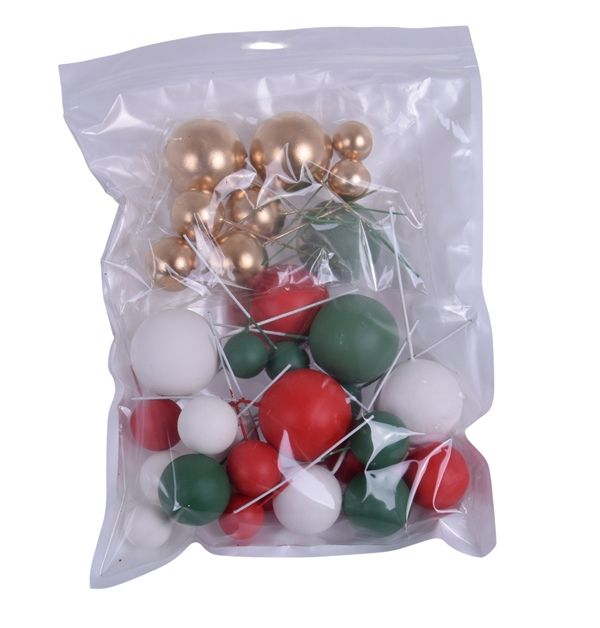 Zápich guličky zeleno-červeno-bielo-zlaté 32 ks