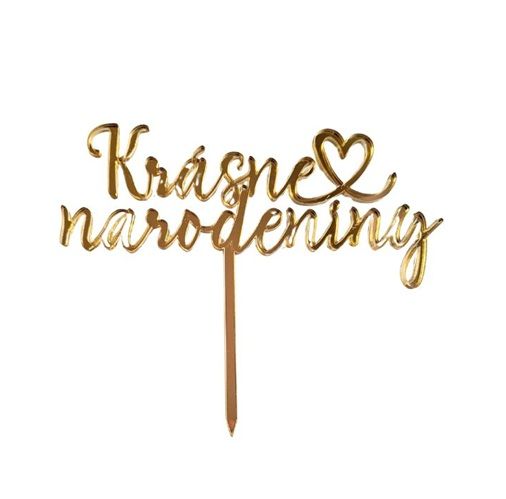 Zápich Krásne narodeniny so srdcom zlatý akryl
